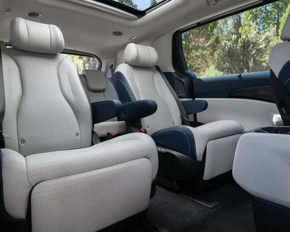 Step inside the 2025 Kia Carnival family vehicle, and you'll be greeted by a modern and spacious interior. The dashboard is designed for convenience and comfort, with a large centre console offering ample storage options. The upscale SX+ trim features leather upholstery and optional reclining second-row seats with pop-up footrests. Though the Carnival boasts generous cargo space, the VIP Seats, while luxurious, limit the maximum cargo capacity range.