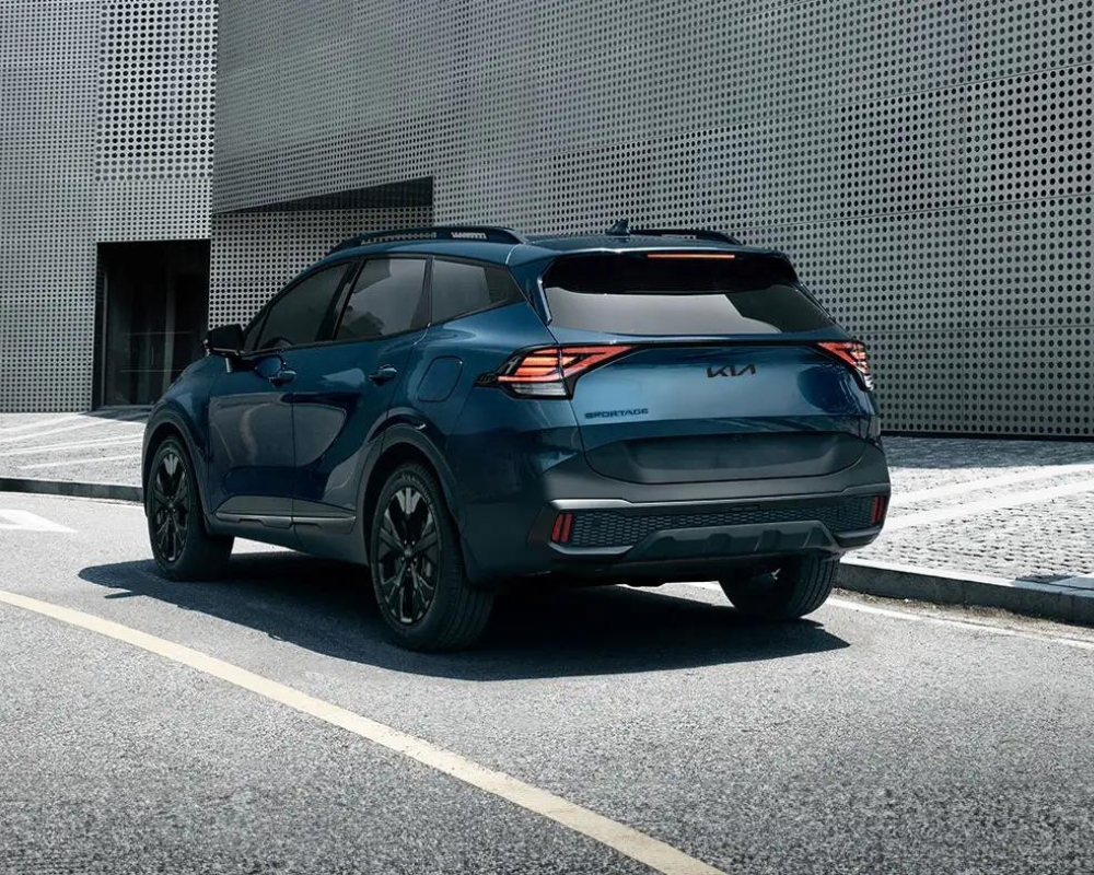 Around the back, the Sportage features sleek LED taillights connected by a thin light bar. A subtle integrated spoiler and aggressive lower bumper design complete the sporty yet refined aesthetic.