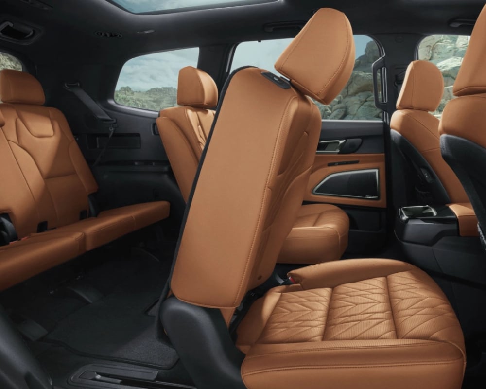 All versions of the Telluride are powered by a 3.8-litre V6 making 291 horsepower and 262 lb.-ft. of torque. The EX trim enhances luxury and convenience. It upgrades the interior with premium leather seating, a power-adjustable passenger seat, and second-row captain’s chairs, making it ideal for families who value comfort. The addition of a larger 12.3-inch multimedia interface makes it more impressive. On the outside, the EX trim stands out with a smart power liftgate and 20.0-inch machined-finish alloy wheels. These features make it easier to load groceries or camping gear and add a touch of sophistication to your drive.