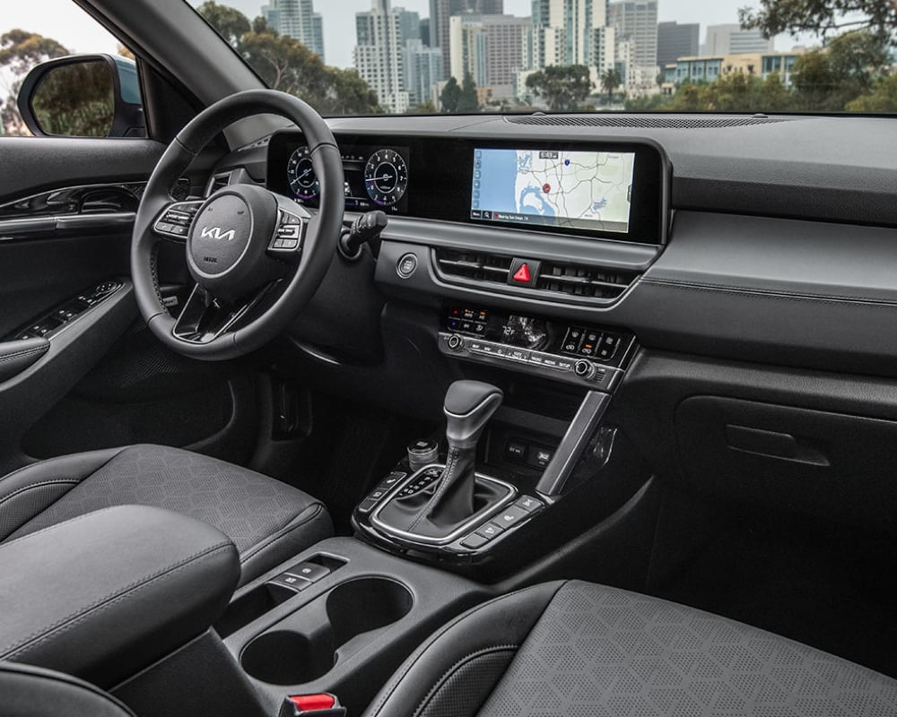 Inside, the driver is greeted by a wide dual-display setup—featuring a 10.25-inch digital instrument cluster and a matching touchscreen infotainment system. This seamless panel makes key functions, such as navigation, music, and vehicle settings, easier to access. Wireless Apple CarPlay and Android Auto come standard, and select trims now offer Kia's digital key feature. For audiophiles, the available Bose audio system enhances the in-cabin experience.