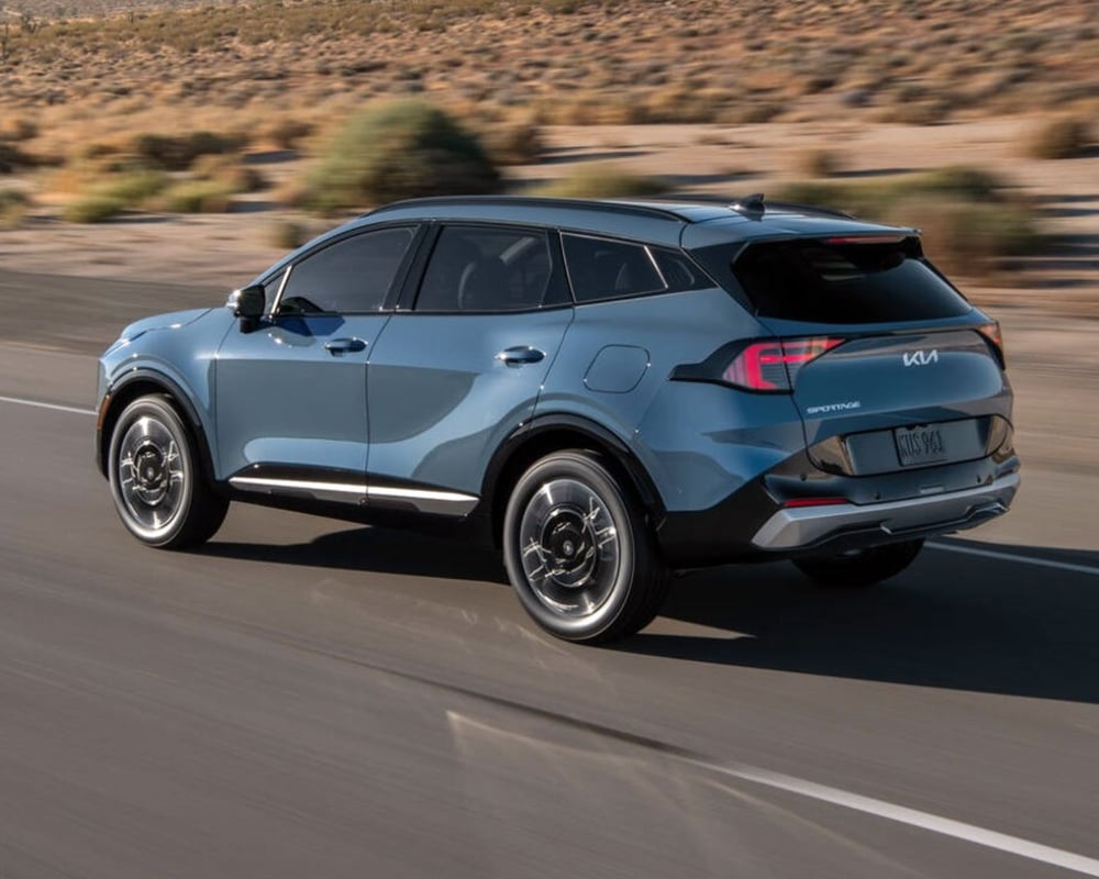 From the outside, the Sportage HEV looks more upscale than the base model. It rides on larger alloy wheels, typically 17 or 19 inches, depending on configuration, compared to smaller wheels on the base trim. Hybrid-specific badging subtly highlights its electrified powertrain. LED lighting elements are more prominent, giving the front and rear a sharper appearance. These details help the HEV stand out without being flashy.
